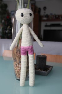 Así que saqué las dos agujas del armario, rescatamos el punto elástico y el punto jersey y tejí un clásico jersey para mi nueva muñeca.