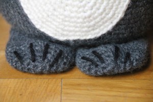 Con lana Merino Arán de color negro y una aguja de coser de lana, formar las garras.