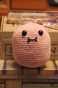 La lana utilizada para el cuerpo tiene unas pequeñas motitas de colores que confieren al bichito un aire malicioso. Yo prefiero tejer con lana más que con algodón, por el acabado suave y por la sensación reconfortante de la lana deslizándose entre mis dedos. Pero se puede tejer con el tipo de hilo que prefieras.
